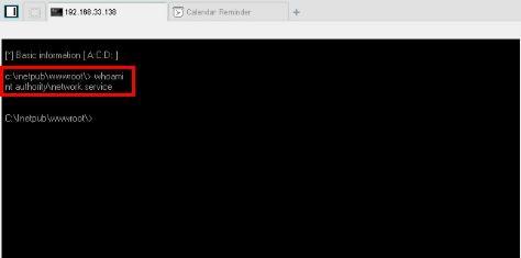 最后,菜刀分享了一个命令行界面,能够通过命令行shell进行操作系统级别的互动,当然继承的权限是WEB应用的权限。如图: