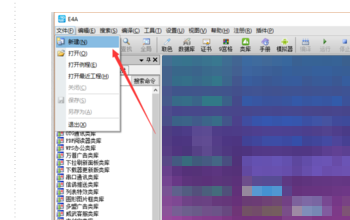 首先我们先将e4a软件打开,然后找到工具栏中的文件,在下拉菜单列表中找到新建文件。