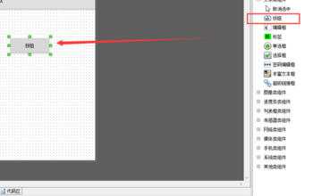 在设计编程的区域中,左侧核心库中,点击按钮,在设计区域中拖住一个按键的图标。