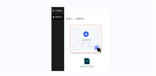 2:若一键补齐字体失败,可以使用方法二上传源文件进行缺失字体补齐。