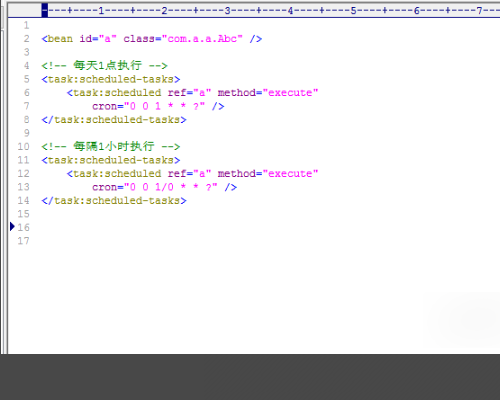 3、我们在这里可以设置每天1点执行。如图所示代码。