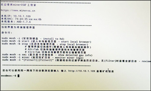 矿机启动:矿机启动后,需要30秒左右后,直到有中文提示界面,说明矿机已经正常启动,如下图,矿机端的工作已经胜利完成。请换到刻盘电脑上,打开浏览器登录云端控制台。