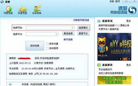 选择节点和模式之后,即可点击启动加速,选择网站框内可不填写,如填写后将会在加速成功后自动为您打开此网站。加速成功后对电脑内所有网络程序进行加速(比如QQ,网络游戏,网页等),P2P下载工具除外。