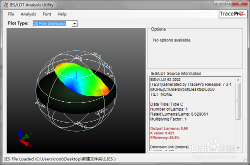 点击TracePro菜单中的“工具程式”,选择“IES/LDT Analysis”,弹出“IES/LDT Analysis Utility”应用程式。