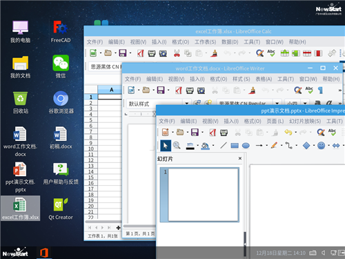 系统首次安装登陆后,桌面上便自带软件中心、谷歌浏览器、截图等常用软件。同时也新增了不少开发软件。
