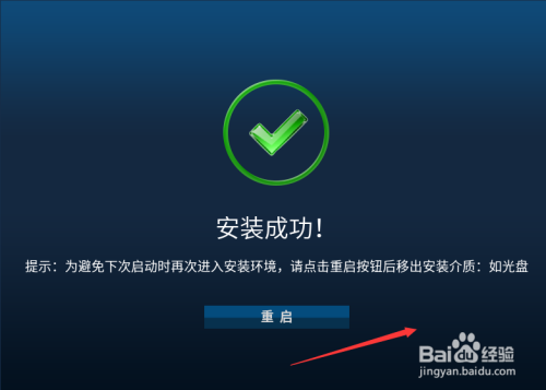 9.等待安装,大概需要20分钟左右。安装完成,点击重启。