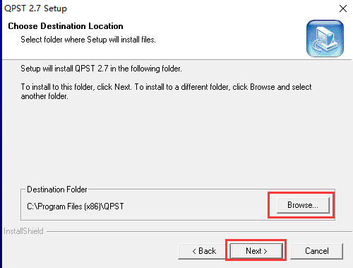 4、进入qpst软件安装位置选择界面,你可以选择默认安装,直接点击界面下方的next(下一步),软件会默认安装到系统C盘中。或者你可以点击界面中的browse(浏览)选项,然后选择合适的安装位置后,再点击next。