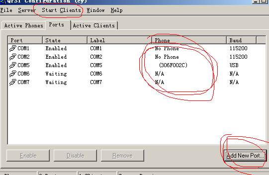 答:QPST包括七个小软件和一个用户手册,用户手册先懒得看了,使用QPST前要先用它的QPST configuration注册一下端口,打开这个软件后,在界面上的PORTS页有一个COM端口列表,默认应该有COM1,COM2二个,我们需要手工把装上数据线驱动以后电脑所使用的那个COM口加上,ADD的时候输入的PORT和LABEL都和电脑里显示的一致就行,比如COM3或COM4(具体根据电脑确定),完成以后在PORTS列表就包括手机所用的这个COM口了