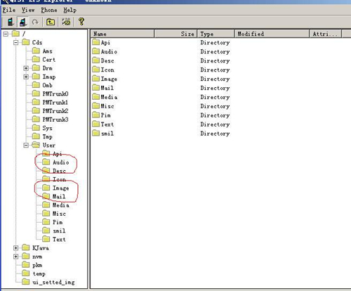 5、按OK就可以使手机和PC互相传输了。用法和资源管理器一样,铃声就拉到cdsuseraudio里面,图片就拉到cdsuserimage里面