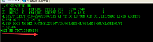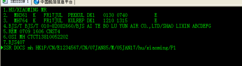 护照信息:ssr docs 航空代码 hk1 证件类型/发证国家/护照号码/国籍/出生日期/性别/证件有效期/姓/名