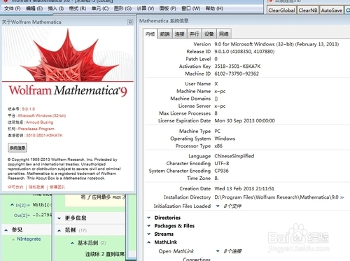 如果想要查看我们系统的信息, 可以有两种方式, 第一种 : 菜单栏 – 帮助 – 关于 Mathematica – 系统信息. 又或者用函数 SystemInformation[]
