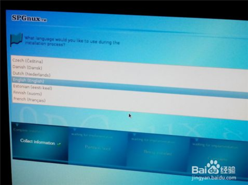 1、首先将电脑设置从U盘启动(如何设置请百度),插入U盘后重启电脑,出现第一个界面选择安装回车进入语言选择界面,如下图。