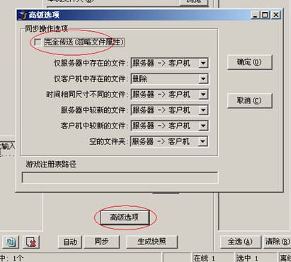 7.同步任务的高级选项中,有一个“完全传送(忽略文件属性)”,请不要选中它,否则所有文件都要传送,而不管文件是否需要更新。