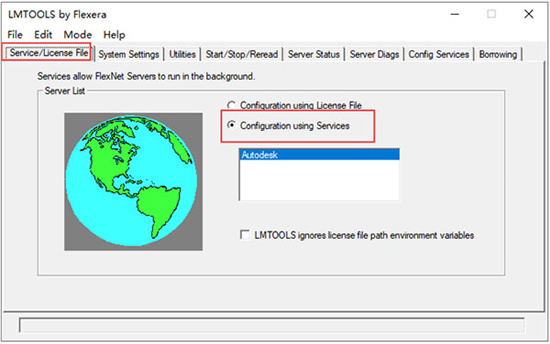 12、在service/license file选择 configuration using services 勾选ignore license file path env var