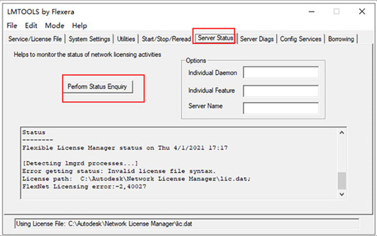 使用127.0.0.1, localhost或安装了flexlm守护程序的位置(语法可以是port@server)。