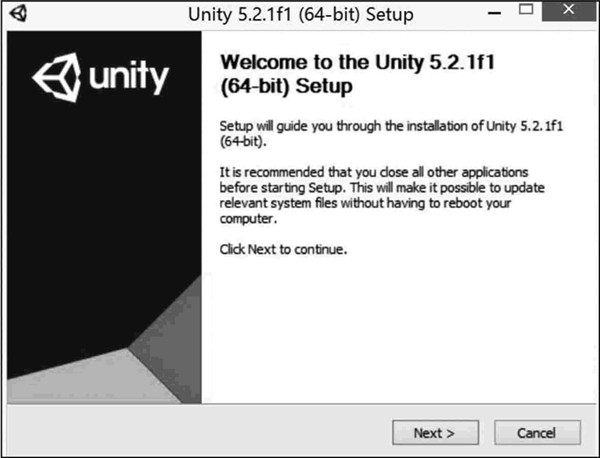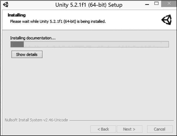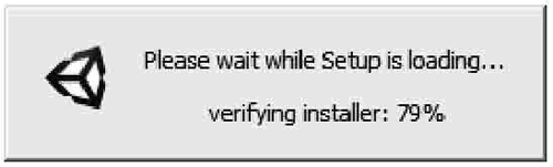 Unity安装程序的加载需要一段时间,需要稍等片刻,如下图所示。