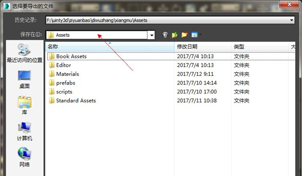 5、然后将模型导出成FBX格式,并把他保存在unity3d工程文件夹下的Assets文件夹下