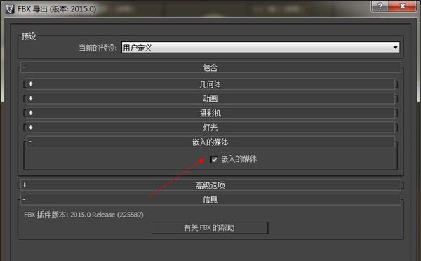 6、导出设置时需要在嵌入的媒体下勾选嵌入的媒体。