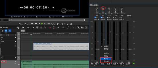 在Edius中打开”调音台”,我们可以在其上部发现”编组”功能: