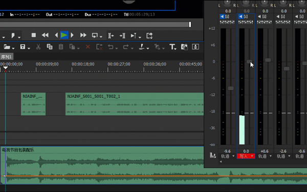 第三步,在播放的同时调整调音台的推子,降低音量往下拉,提升音量向上提,对音量的改变会以关键点的形式体现在音量线上: