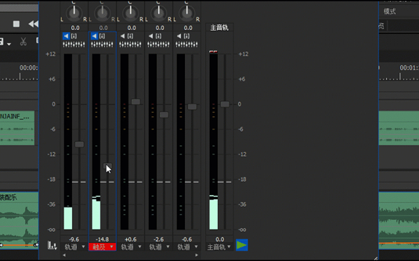 第一步,在调音台底部将音乐轨道的”关闭”改为”触及“或者”写入”