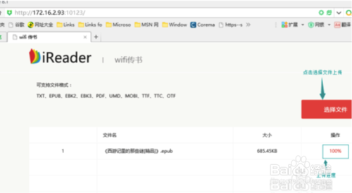 电脑端:在浏览器中输入iReader阅读器WiFi传书界面显示的网址,如常用浏览器无效,建议改用IE浏览器。