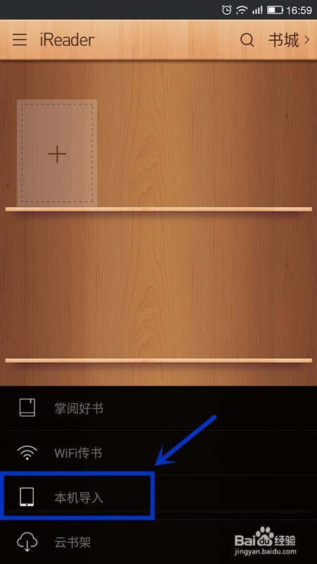 2、连接网络之后,开始WiFi传书正式步骤,在阅读器书架界面点击WiFi传书,然后iReader会跳转到WiFi传书信息界面。