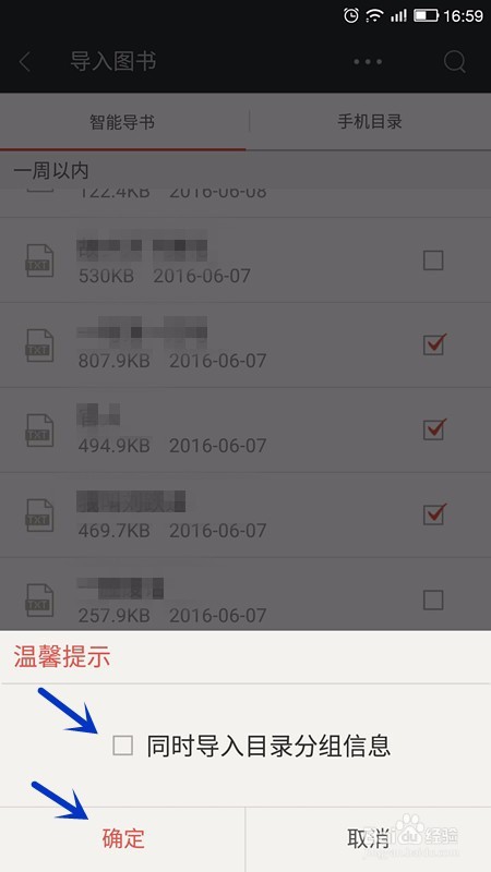再加入书架时,会提示我们需不需要“同时导入目录分组信息”,一般都是勾选需要,再确认即可,如下图: