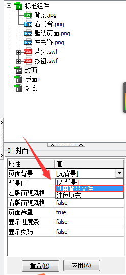 5、点击”属性工具栏“的页面背景,选中”使用背景文件“。
