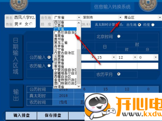 1. 出生地和出生日期排盘窗口: