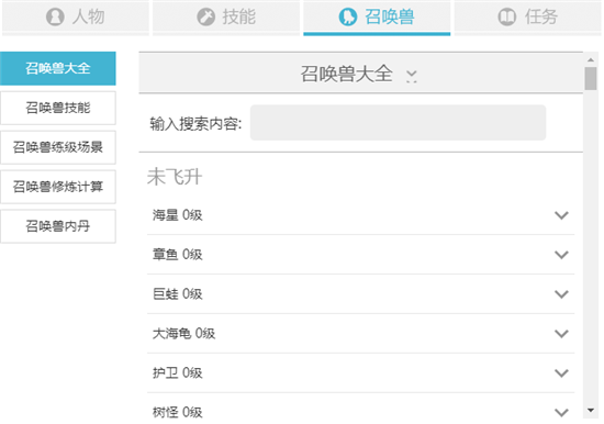 召唤兽计算:包括召唤兽升级,修炼,潜能点,资质计算,召唤兽加点模拟等。
